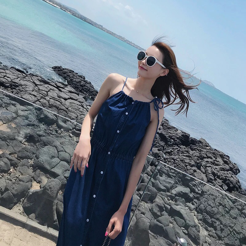 ĐẦM JEAN MAXI CỔ RÚT 2 DÂY DỄ THƯƠNG - NJ923