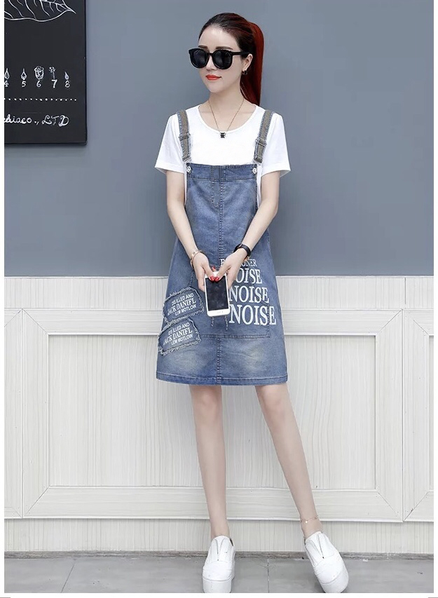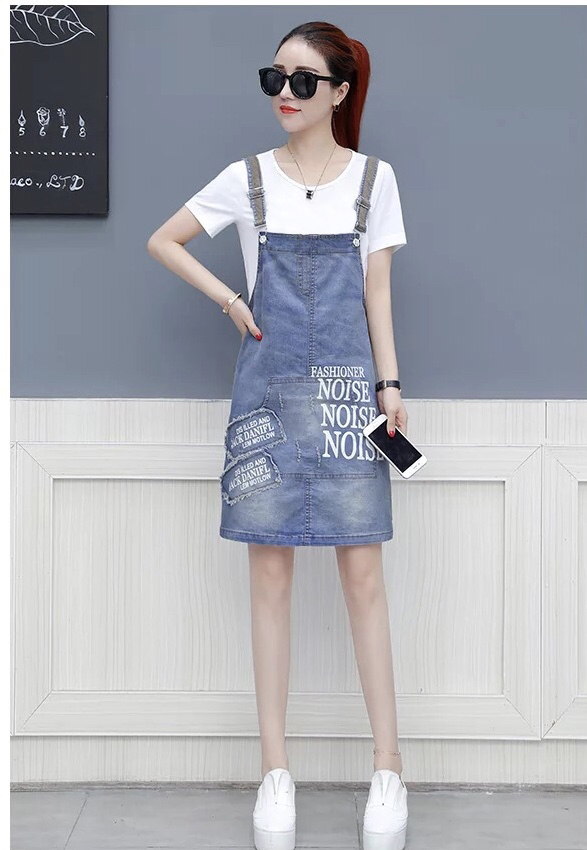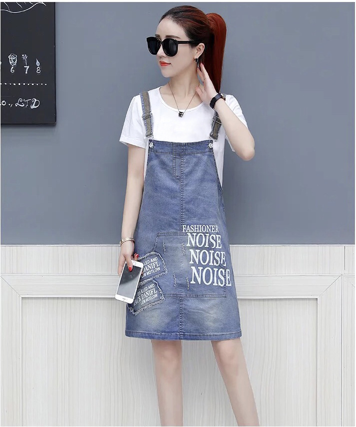 Kiểu dáng: Yếm 2 dây jean, cài nút, túi trước và 2 túi sau, ko kèm nịt, in chữ và đắp rách