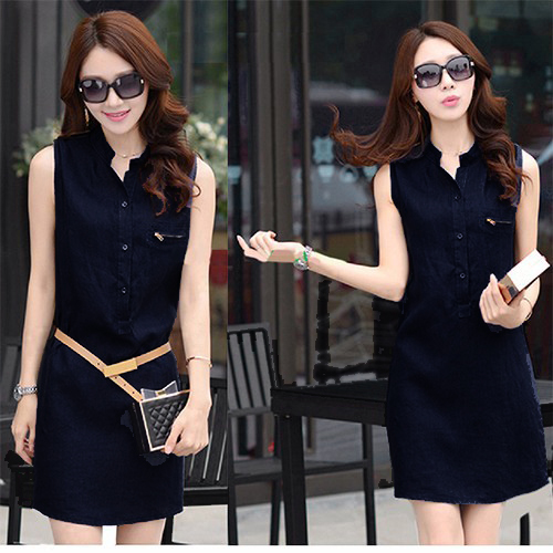 ☑️ Kiểu dáng: Đầm jean suông, cổ trụ, sát nách, kiểu chui đầu, phối cầu vai, phối dây kéo trước ngực.